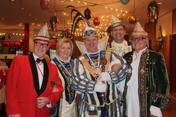 Hoher Besuch im Kristallsaal der Koelnmesse bei der traditionellen "Blaue Montags-Sitzung" der Kölner Narren-Zunft: Das Prinzenpaar der Stadt Erkelenz, Prinz Michael I. (Dilkrath) und Prinzessin Ute I. (Mackenstein), waren samt Gefolge und Vorstand der Erkelenzer K.G. von 1832 e. V., einer der ältesten Karnevalsgesellschaften im Rheinland, dem Ruf der Kölner Narren gefolgt und hatten sogar noch Prinzessin Katharina I. aus dem benachbarten Golkrath samt Gefolge mitgebracht. Den rund 40 Jecken aus Erkelenz wurde ein breiter Querschnitt des Kölner Karnevals geboten.