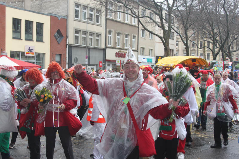 Hallo? Was war das denn? Bis gegen 10:00 Uhr war es auf Kölns Straßen trocken. Doch danach setzte ergiebiger Regen ein, der die zahlreichen Eröffnungen des Kölner Straßenkarnevals in den Stadtteilen quasi teilweise im Keim ertränkte! Die Kneipen in der Kölner Altstadt und im Zülpicher Veedel, wo sich traditionell die Studenten zur großen Straßenparty auf der Zülpicher Straße versammeln, waren schnell rappelvoll. Und auch die Veedelskneipen konnten sich vor trink- und feierfreudigen Jecken kaum retten. Währenddessen feierten einige Karnevalsgesellschaften fast unter Ausschluß der Öffentlichkeit und im strömenden Regen ...