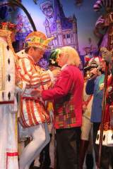 Beim Aufzug des Kölner Dreigestirn der Session 2016 zu Beginn der zweiten Abteilung entdeckten die Tollitäten in der ersten Reihe Hans Süper, den bekannten Komiker des legendären "Colonia Duett". Die Narrenherrscher holten Süper unter dem Jubel der Jecken auf die Bühne, um ihm die Prinzenspange der Session zu überreichen. Nach dem Auszug der Tollitäten kam der Elferrat für eine besondere Ehrung nach vorne auf die Bühne - Peter Raddatz, der als "Mann met däm Höötche" für Jahrzehnte zu den Top-Rednern des Kölner Karnevals gehörte und der vor einigen Jahren in den karnevalistischen Unruhestand gegangen ist, wurde zum "Grielächer des Jahres 2015" ernannt. Präsident Rudi Schetzke übergab Raddatz die gleichnamige in Messing getriebene Ehrengabe, geschaffen von Metallbildhauer Tobias Kreiten. Nach dieser Ehrung sorgten Guido Cantz und Marc Metzger als "Dä Blötschkopp" wieder für Lachsalven, während die Bläck Fööss und die Räuber für Schunkelstimmung im weiten Rund des Maritim Hotel Köln sorgten.