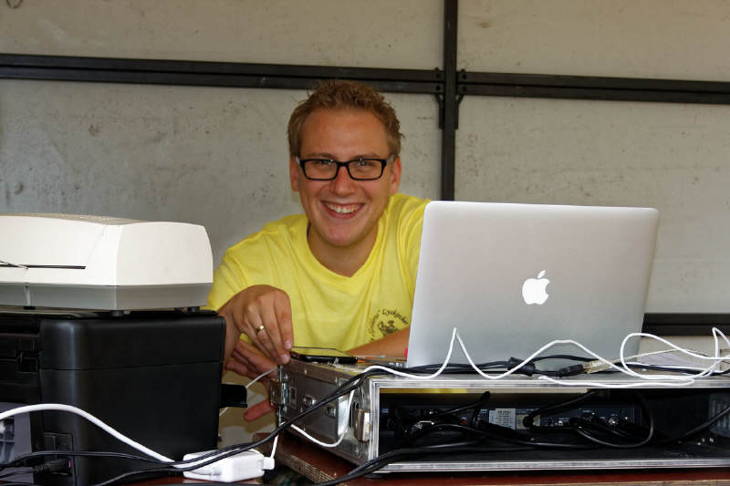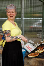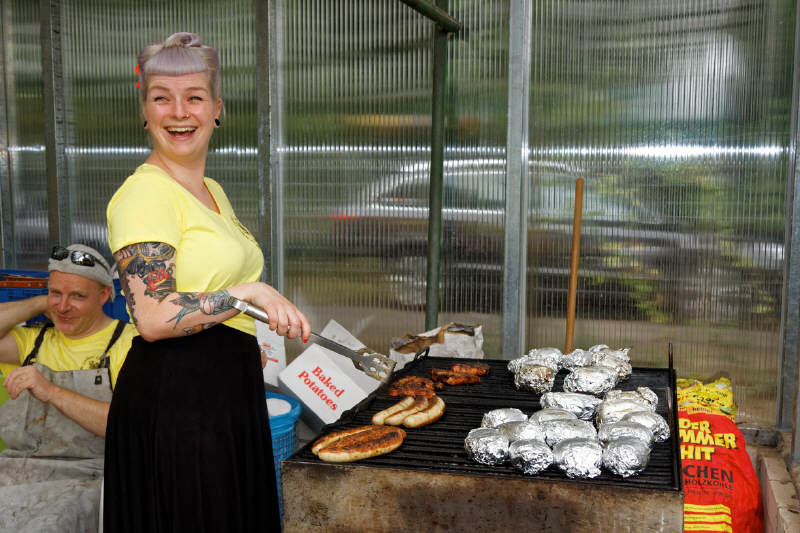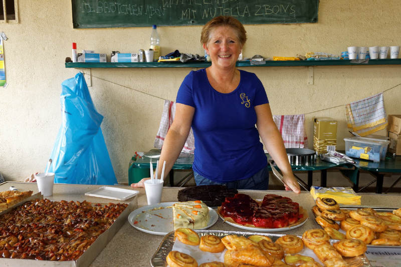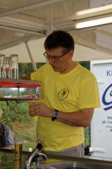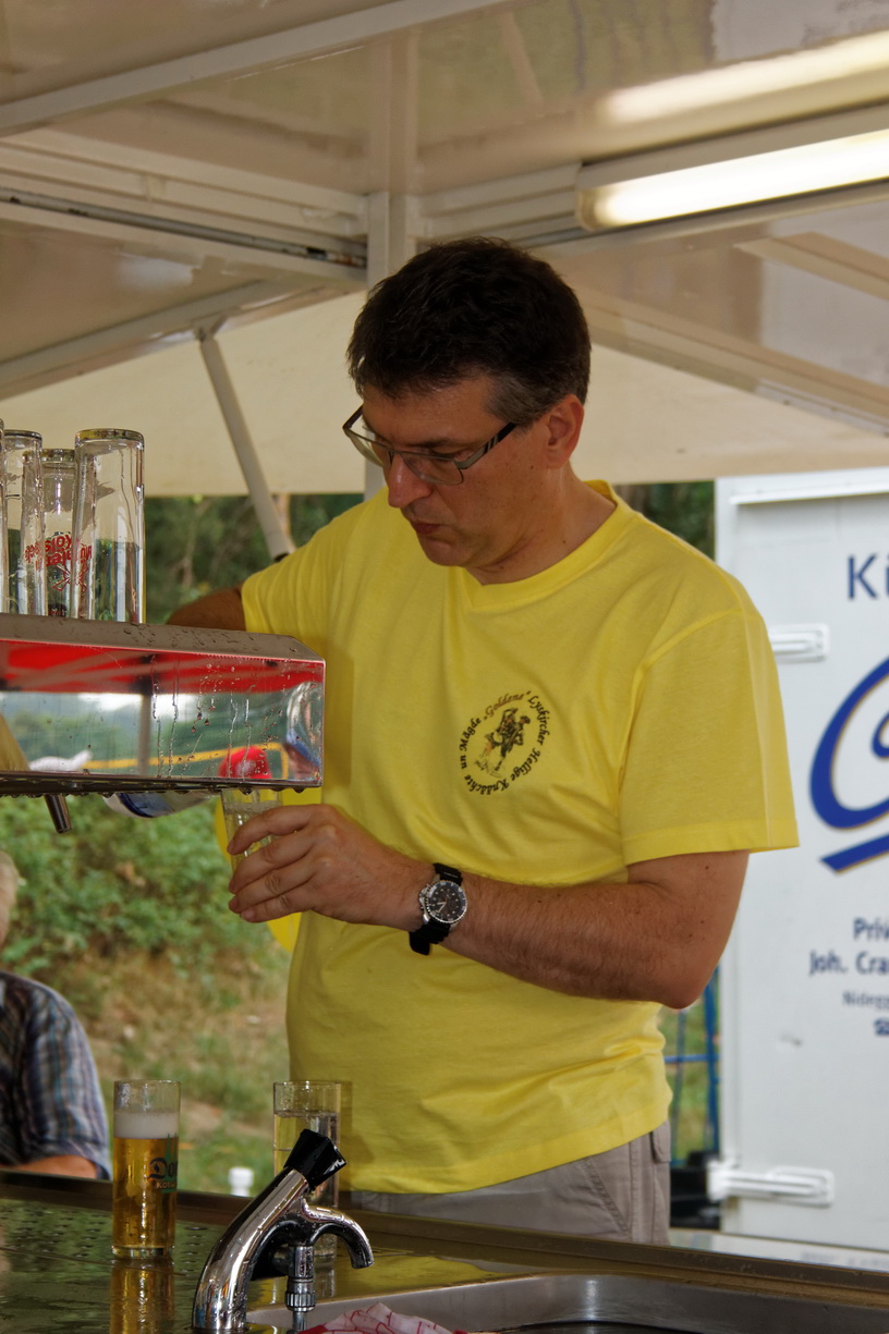 Für die Verpflegung war hinlänglich gesorgt - es wurde gegrillt, der vor einigen Wochen frisch gewählte Präsident der Gesellschaft kümmerte sich höchstselbst und gewissenhaft um die Getränkeversorgung der Teilnehmer und Besucher (Foto), während seine Gattin die leckeren Kuchen und Teilchen wehrhaft vor Fliegen, Bienen und Wespen verteidigte.