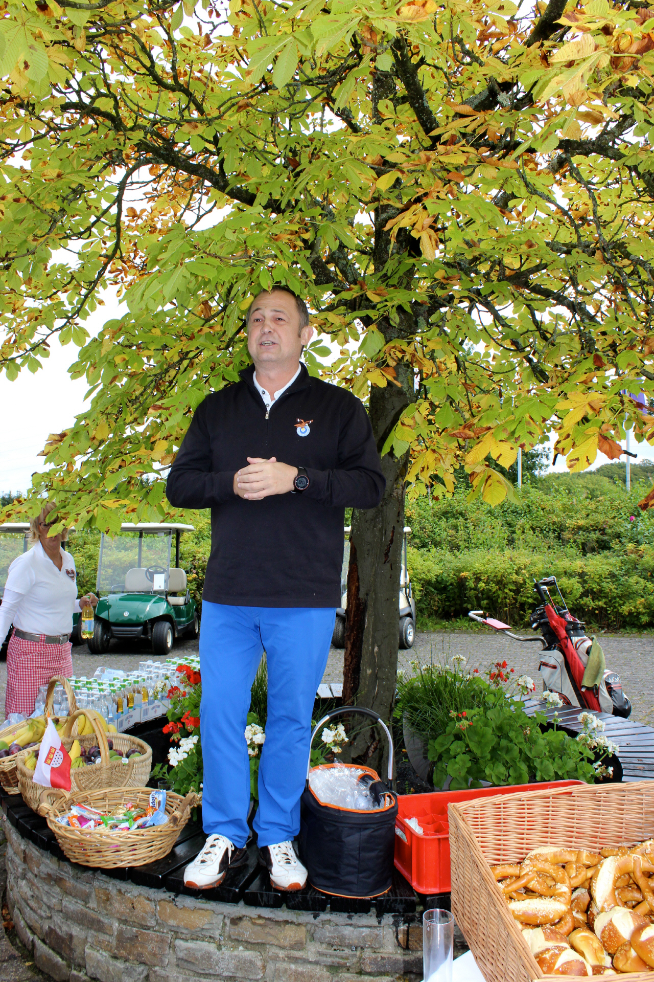 Nach einem zweiten Frühstück mit Kölsch und kölschen Tapas begann um 12.30 Uhr das Turnier mit einem Kanonenstart bei bewölktem, aber trockenem Himmel. Gespielt wurde in 4er Flights als Florida Scramble. Selbstverständlich hatten die Organisatoren Wünsche der Spieler für die Zusammensetzung einzelner Flights gerne berücksichtigt.