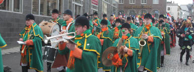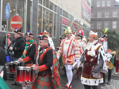 Nachdem die Domstädter Köln gemeinsam mit ihren Freunden der "Royal Naval Piper Society" am frühen Sonntagmorgen zum 16ten Mal einen englisch-kölschen Gottesdienst in der Minoritenkirche gefeiert hatten, zogen die beiden Kapellen gemeinsam mit dem Kölner Dreigestirn in den Gürzenich, wo die Domstädter und ihre schottischen Freunde heute das Vorprogramm für die Kostümsitzung der Große Kölner K.G. bildeten.