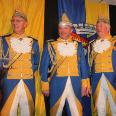 Bürgergarde-Präsident Markus Wallpott mit 3-Tage-Bart. Sein Kommentar: "Ich lasse mir den Bart jetzt etwas länger wachsen. Dann rasiere ich den ab und streue mir die Haare dann auf meinen Kopf ..." - Gelächter bei seinen Korpskameraden und den geladenen Gästen. Pünktlich um 19 Uhr zog der Regimentsspielmannzug in das Brauhaus ein und eröffnete den Appell mit dem neuen Potpourri. Bevor es an die Ehrungen, Vereidigungen und Beförderungen ging, statteten die Sternsinger des Kölner Doms dem Korps ihren Besuch ab, um für Gottes Segen zu sorgen. Anschließend wurde im Eiltempo geehrt und vereidigt. Besonders erwähnen muss man bei den Ehrungen Präsident Markus Wallpott für 35-jährige Mitgliedschaft sowie Heinz Birkhoven und Fritz Odenthal für 40-jährige Mitgliedschaft. Odenthal, Ehrenkoch der Bürgergarde, war sichtlich ergriffen - und freute sich darüber, dass Wallpott ihn einlud, in der Session jederzeit mit "seinem" Korps mitzufahren, wenn es die Gesundheit erlauben würde. Nach der Vereidigung der neuen aktiven Mitglieder ging das Kommando an die Küche: "Essen kann serviert werden!"