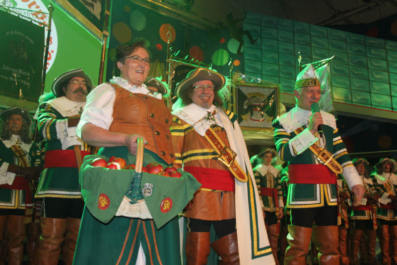 Den Abend eröffnete auch hier die Kinder- und Jugendtanzgruppe "Pänz vum Jan von Werth", deren neue Mitglieder gleich vereidigt wurden. Anschließend verabschiedete das Korps die Darsteller des Traditionsfiguren "Jan un Griet" aus dem Vorjahr, Michael und Hedi Schulte. Hierbei wurde Michael Schulte zum Obristleutnant des Reiter-Korps Jan von Werth befördert. Danach proklamierten Festkomitee-Vizepräsident Dr. Joachim Wüst und Bürgermeisterin Elfi Scho-Antwerpes das Traditionspaar "Jan un Griet 2016", Bernd und Angelika Glasemacher. Zur Stärkung für den restlichen Abend gab es dann Grünkohl mit Mettwurst.