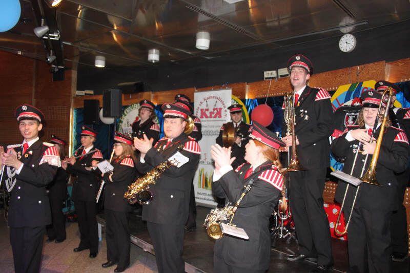 In den Dienst der guten Sache stellten sich unentgeltlich (!) neben dem Kölner Dreigestirn die Redner Heinz Pohl jr. als "Paul Posthorn", Axel Höfel als "Ne kölsche Köbes" und Jupp Menth als "Ne kölsche Schutzmann" sowie musikalisch die Jungen Trompeter, die Domstadtbande, die Altreucher, die Vajabunde, Kölschraum, Joker Colonia und zum ersten Mal das Musikkorps "Schwarz-Rot Köln". Das Musikkorps war heute zahlenmäßig durch eine Grippe stark dezimiert. Trotzdem konnten die junge Musikerinnen und Musiker, deren Keimzelle das Musikkorps der Bundeswehr ist, die Gäste im heimeligen Bistro begeistern. Für die Darbietung, auch in personell gerade schwieriger Besetzung, gab es die erste und einzige Rakete des heutigen Tages! Und die feste Zusage des Musikkorps, dass man beim nächsten KrK-Benefiz am 19. Februar 2017 in Zoch´s Bistro mit allen Mann vorbeikommt - auch wenn es dann richtig knubbelig im Bistro von Helmut Zoch werden wird!