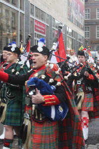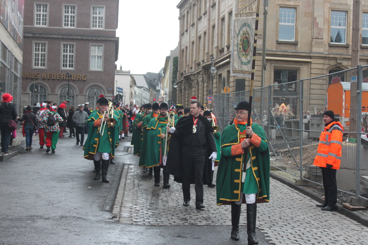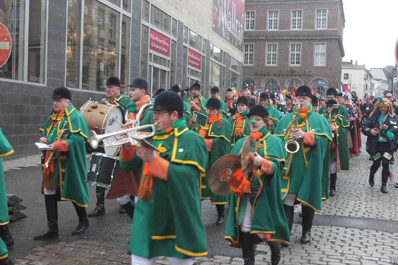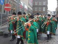 Nachdem die Domstädter Köln gemeinsam mit ihren Freunden der "Royal Naval Piper Society" am frühen Sonntagmorgen zum 16ten Mal einen englisch-kölschen Gottesdienst in der Minoritenkirche gefeiert hatten, zogen die beiden Kapellen gemeinsam mit dem Kölner Dreigestirn in den Gürzenich, wo die Domstädter und ihre schottischen Freunde heute das Vorprogramm für die Kostümsitzung der Große Kölner K.G. bildeten.