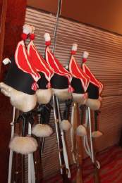 Besonders gewürdigt wurde auch Dr. Marko Schauermann, der Amtsvorgänger von Markus Simonian in den letzten zwölf Jahren. Den Ehrensäbel hatte Schauermann bereits in der letzten Session erhalten. Auch hier gab es anschließend eine stärkende Erbsensuppe, bevor es an die Ehrungen und Beförderungen ging. Beim Einmarsch des Korps staunten einige Gäste nicht schlecht, führte Schatzmeister Kurt Wietheger doch eine überdimensionale Quietscheente in Husarenoutfit auf einem Standartenstock mit - eine solche Ente aus Marzipan befand sich übrigens auch auf der Torte für Präsident Simonian. Der Hintergrund ist einfach: Seit einigen Monaten reist eine HusarEnte durch die Welt und lässt sich an allen möglichen Orten fotografieren. Diese HusarEnte hat ganz viele Kameraden, die es auf den Sitzungen des Treuer Husar käuflich zu erwerben gibt. Und die große HusarEnte wird bei den Aufzügen des Korps mit durch die Säle ziehen. Damit haben die blau-gelben Husaren ein Alleinstellungsmerkmal, denn sie sind das erste Traditionskorps mit eigener Quietscheente, tschuldigung, HusarEnte!