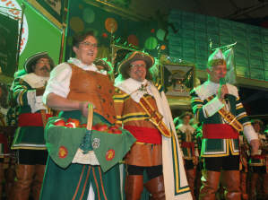 Nach einer deftigen Stärkung in Form des gemeinsamen Essens tanzten die wieder neu formierten "Winzer und Winzerinnen vun d´r Bottmüll" der K.G. Alt-Severin. Anschließend starteten die Ehrungen und Beförderungen mit der Ernennung der Ehrenoffiziere aus Politik und Stadt. Nachgeholt wurde an diesem Abend auch die Ehrung mit dem "Goldene Kappes" an Ludwig Sebus, der beim eigentlichen Termin aus gesundheitlichen Gründen verhindert war. Stellvertretend für die zahlreichen Geehrten seien Bürgerwehr-Literat Michael Gerhold (Sonderstufenorden in Silber) und Sitzungsleiter Dietmar Broicher (Festkomitee-Verdienstorden in Silber) genannt. Nach der Ernennung der Ehrenoffiziere aus dem Karneval und der Beförderungen von Senatoren und Mitgliedern des Corps á la suite unterhielten "Die 3 Liköre" die Anwensenden.