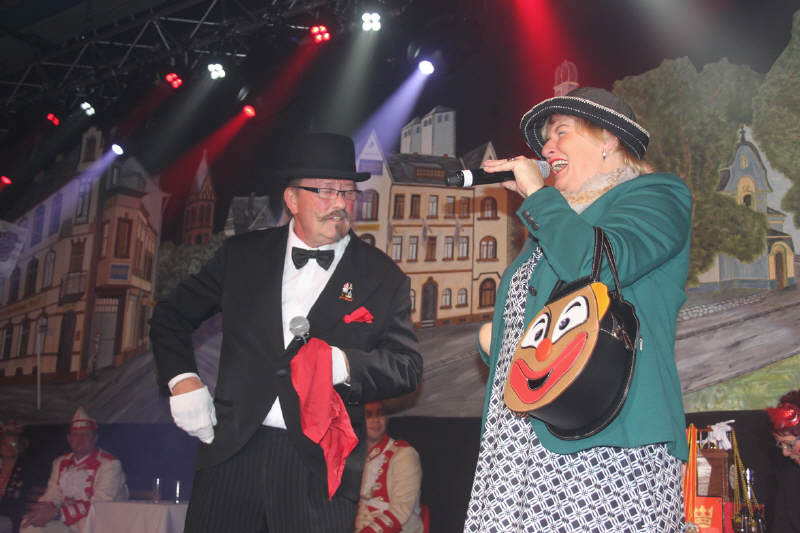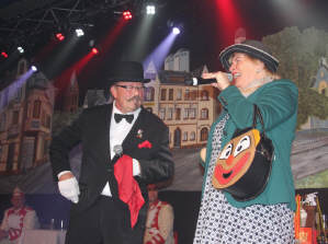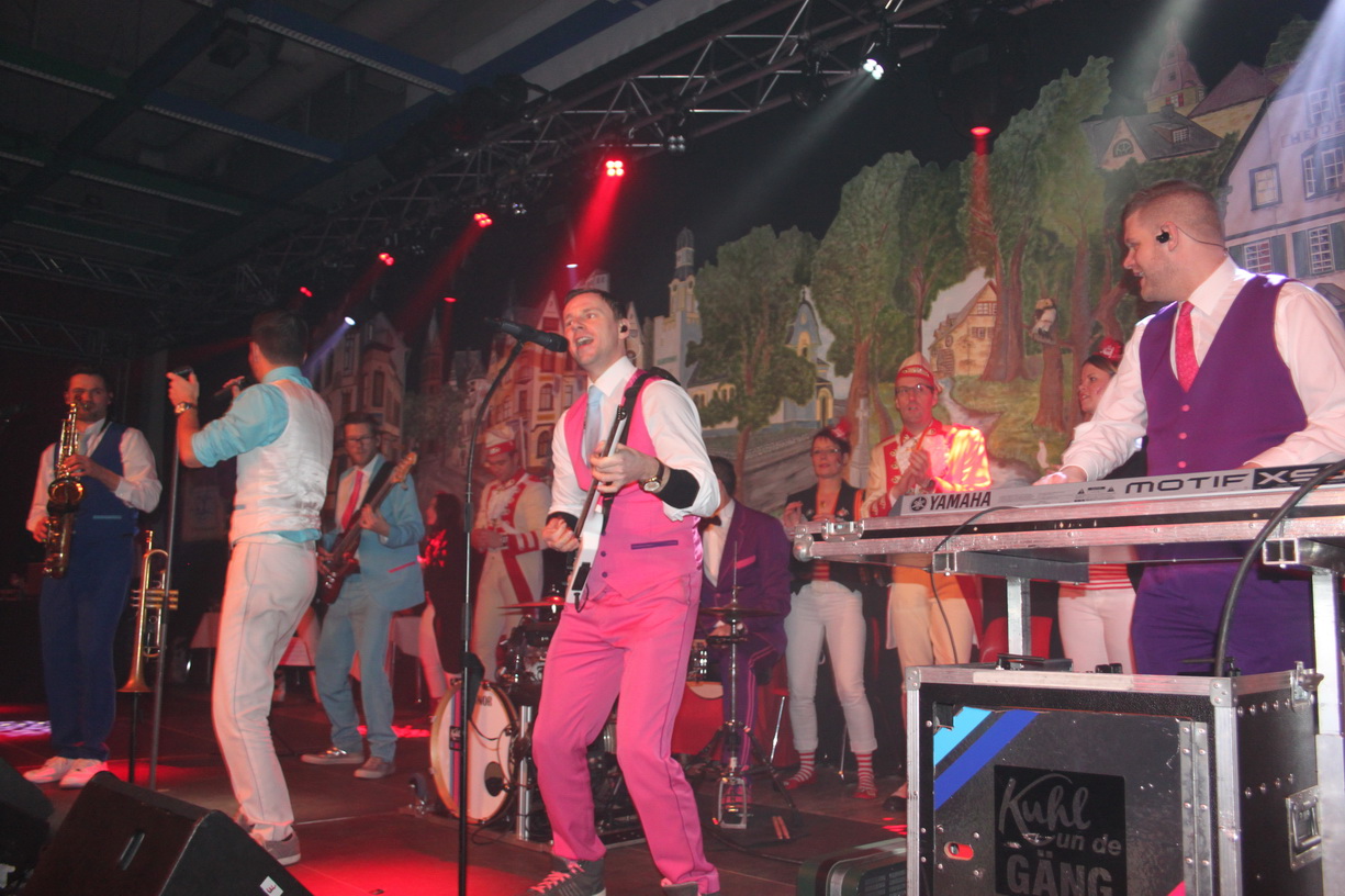 Die Domhätzjer liessen die Jecken derweil schunkeln, bevor Lydia und Rolf Goliasch als "Beckendorfer Knallköpp" mit Geschichten aus dem Eheleben der beiden Vollblutkarnevalisten die Jecken zum Lachen brachte. Mit ihren alten und neuen Liedern - und natürlich mit dem Gassenhauer "Ich han dä Millowitsch jesinn" - holte die junge Band "Kuhl un de Gäng" um Frontmann Michael Kuhl die Jecken von den Stühlen. In allen Gängen und teilweise sogar auf den Stühlen tanzten die Besucher zum schmissigen Sound der Band, die in den letzten beiden Jahren einen kometenhaften Aufstieg erleben durfte. Mit der Formation "Blömcher", ehemals als "Blom un Blömcher" bekannt, und ihren Parodien endete die erste Abteilung.