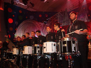 Einen wahren Hype erleben zurzeit auch das Musikkorps "Schwarz-Rot Köln", das in der Karnevalssession als das Musikkorps der Grossen von 1823 durch die Säle zieht, und die Drumline "The Drummerholics": Die Formation, die nicht nur mit erstklassigen Potpourris, sondern auch mit satten Drumsounds, begeistert, reisst zurzeit einen Saal nach dem anderen ab! Da hielt es sogar den Roermonder Stadtprinz Stefan I. nicht mehr auf seinem Sitz! Und bei der beeindruckenden Drumshow der acht Trommler, teilweise im abgedunkelten Saal mit Schwarzlicht-Effekten, hielt es dann keinen der 1.200 Jecken mehr auf dem Stuhl!